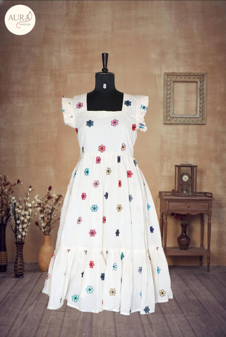 kalamkari with Fandi crush (V neck dress )